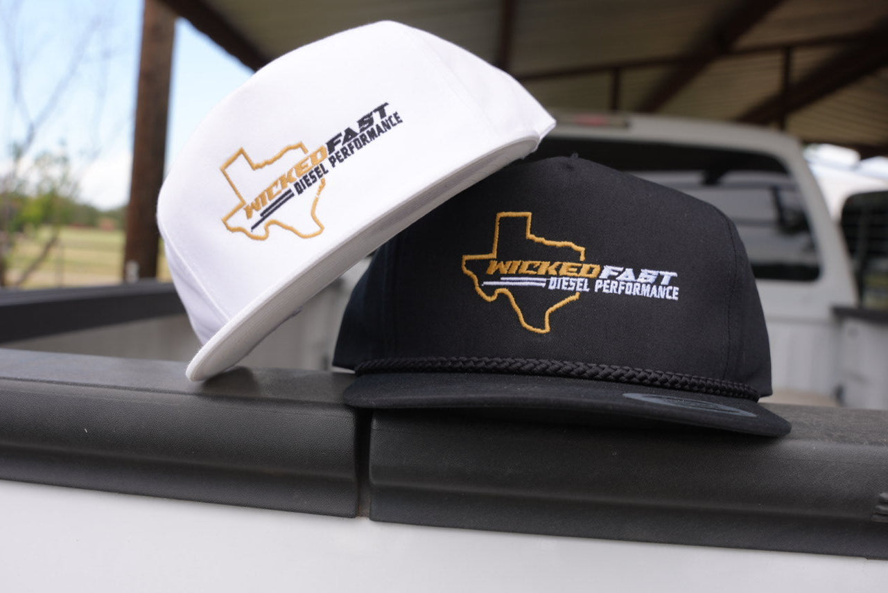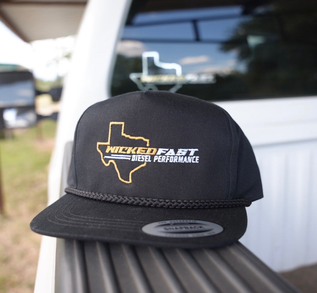 Rep your diesel pride with the Wicked Fast Diesel Performance snapback hat, built for truck owners, mechanics, and diesel enthusiasts. Featuring our bold Texas-outline logo embroidered in gold and black, this hat is perfect for long shop days, weekend truck meets, or cruising backroads.