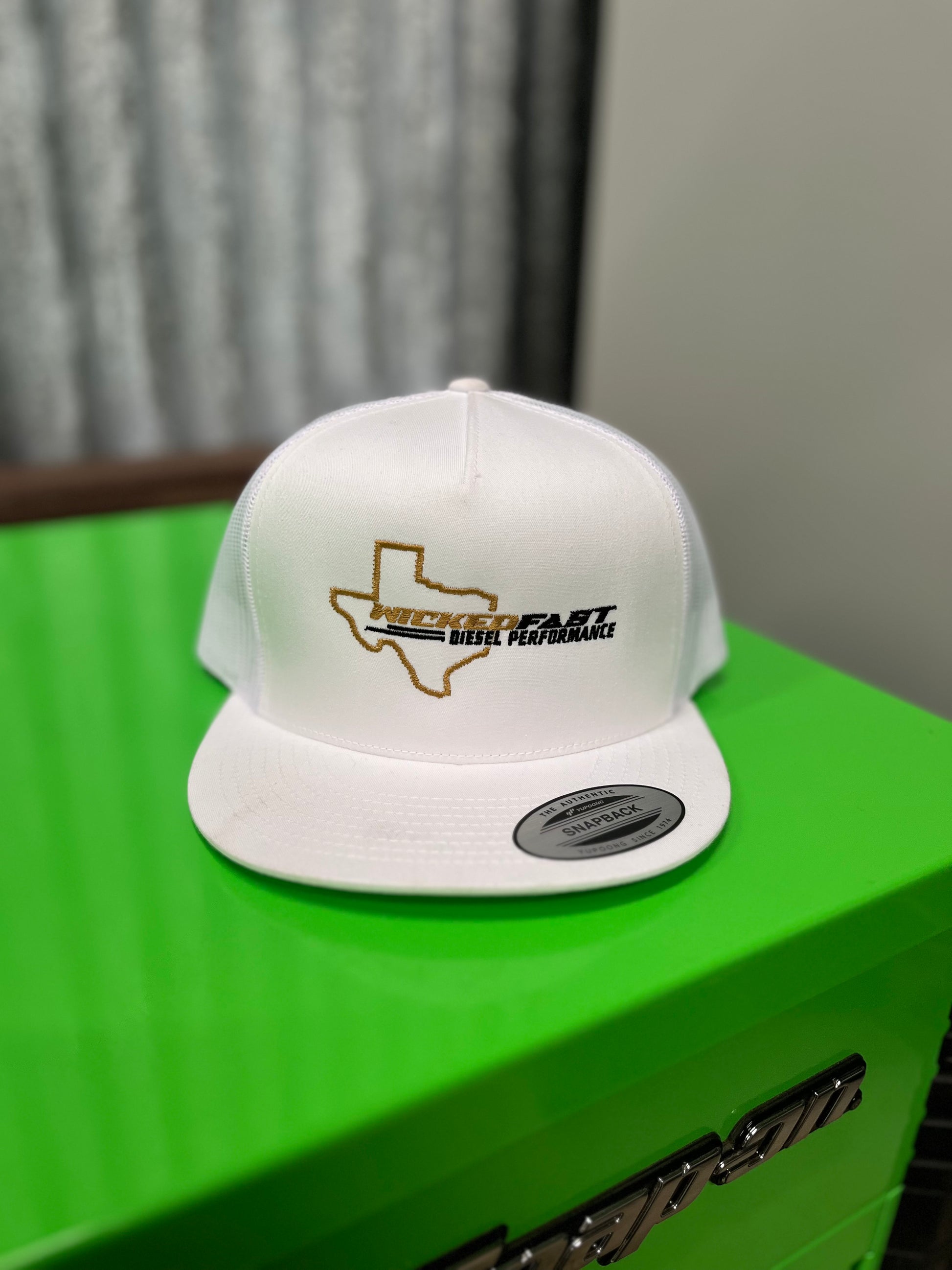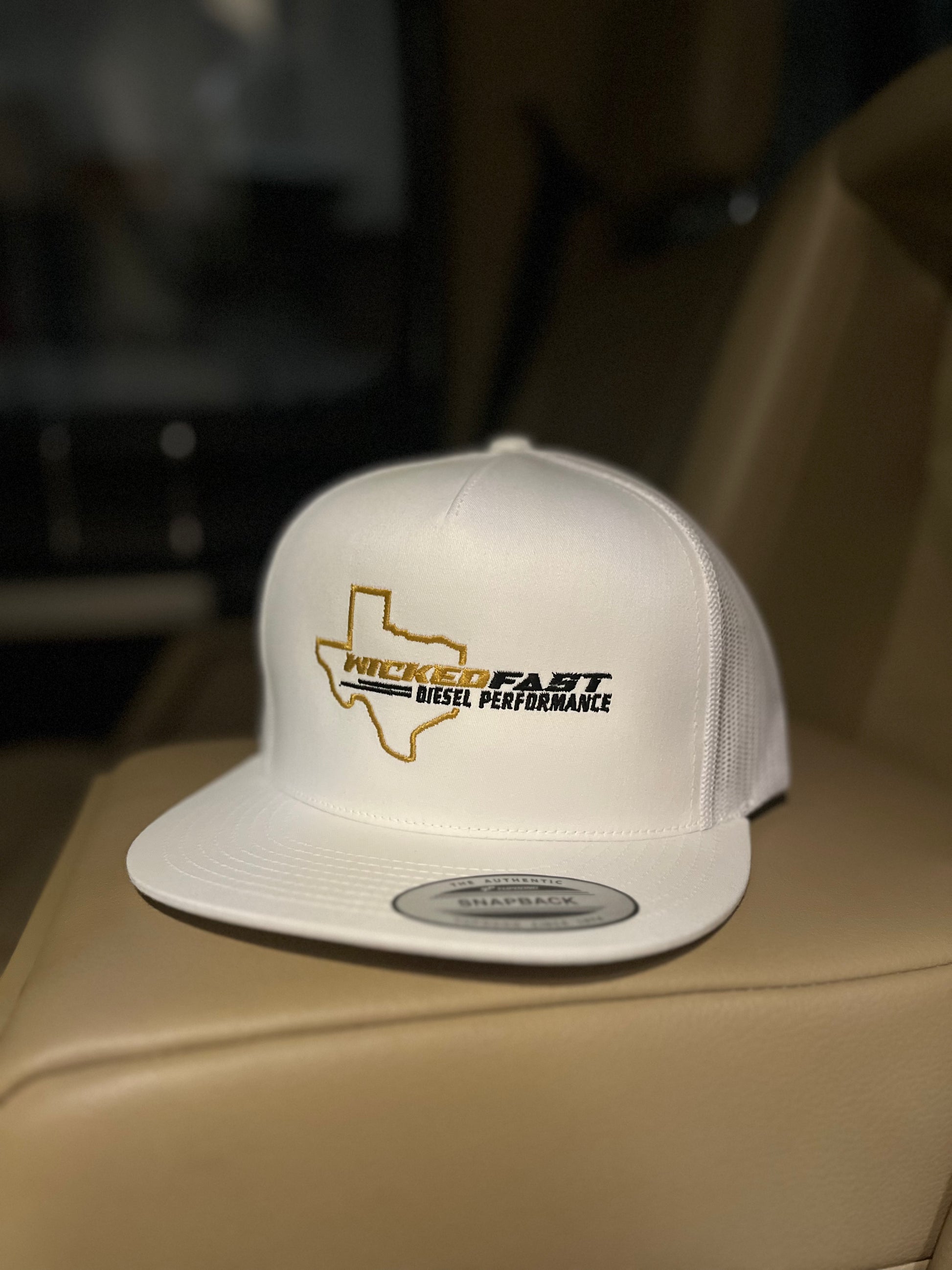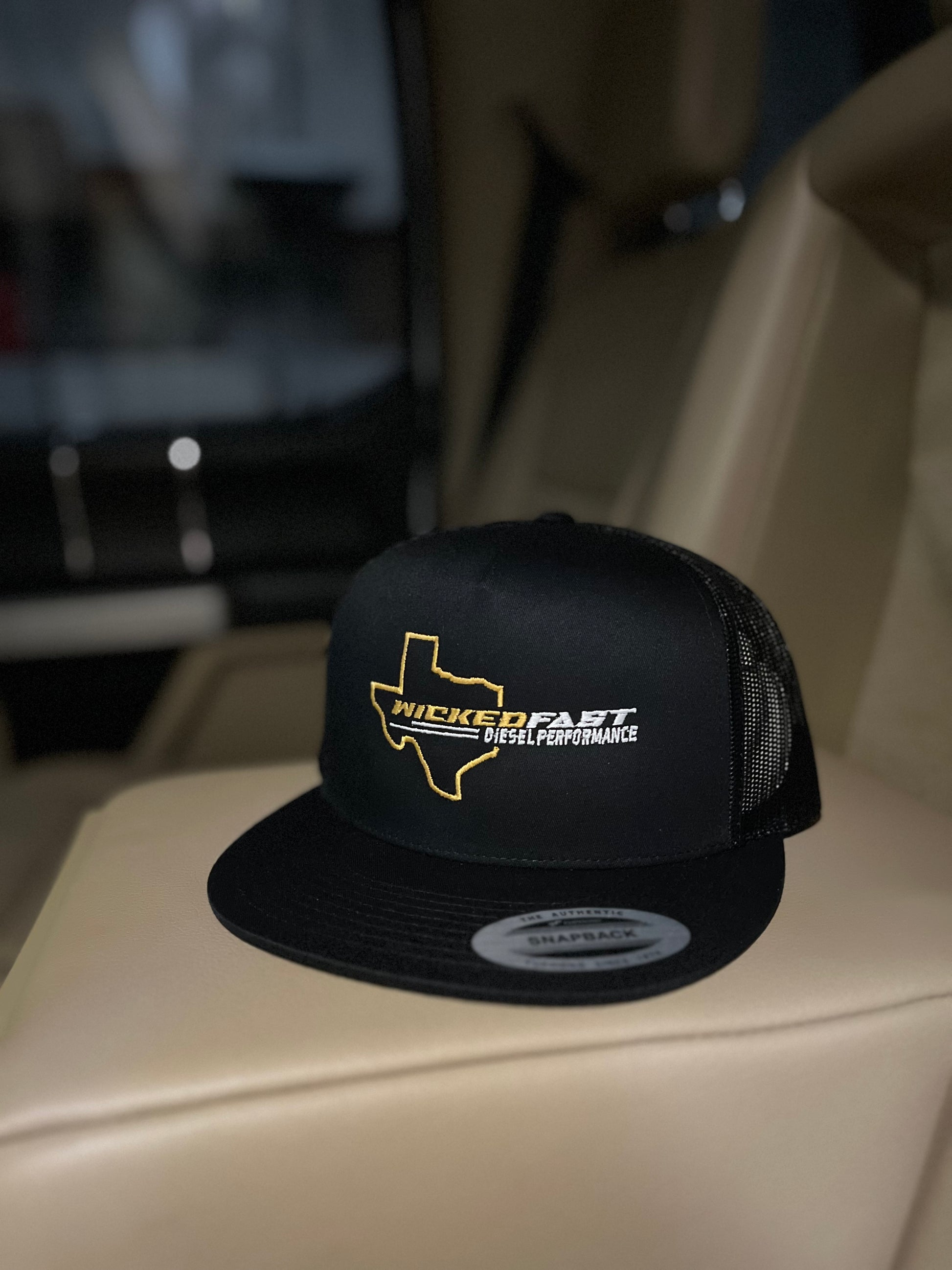 Rep your diesel pride with the Wicked Fast Diesel Performance snapback hat, built for truck owners, mechanics, and diesel enthusiasts. Featuring our bold Texas-outline logo embroidered in black and gold, this hat is perfect for long shop days, weekend truck meets, or cruising backroads.